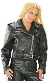 Classic Black Women's Biker Motorcycle Jacket - Size : Large : Ladies Motorcycle Jackets